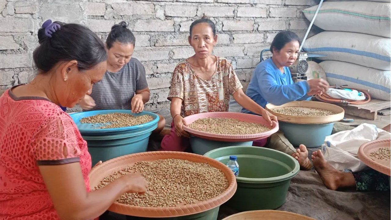 Sejak matahari muncul di balik Gunung Batur, Niluh dan pekerja lainnya sudah duduk di depan tampah bambu dengan tangannya yang cekatan dalam memilah biji-biji kecil berwarna coklat muda satu per satu.
