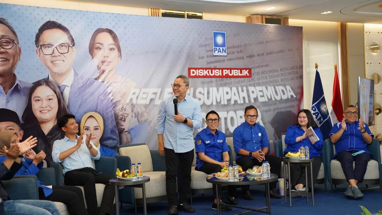 Ketua Umum Partai Amanat Nasional (PAN) Zulkifli Hasan ketika menjadi narasumber dalam acara diskusi refleksi sumpah pemuda. --