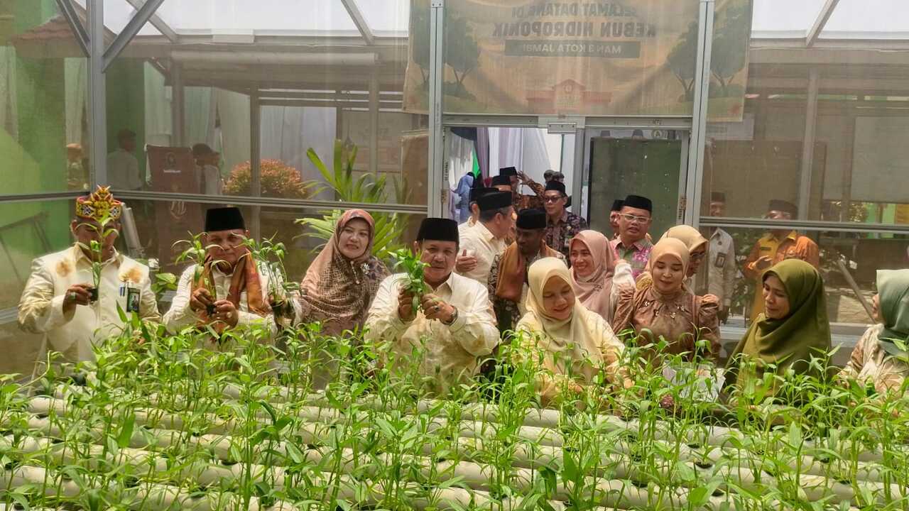Kakanwil Kemenag didampingi istri saat panen kangkong di ecobrick MAN 3--